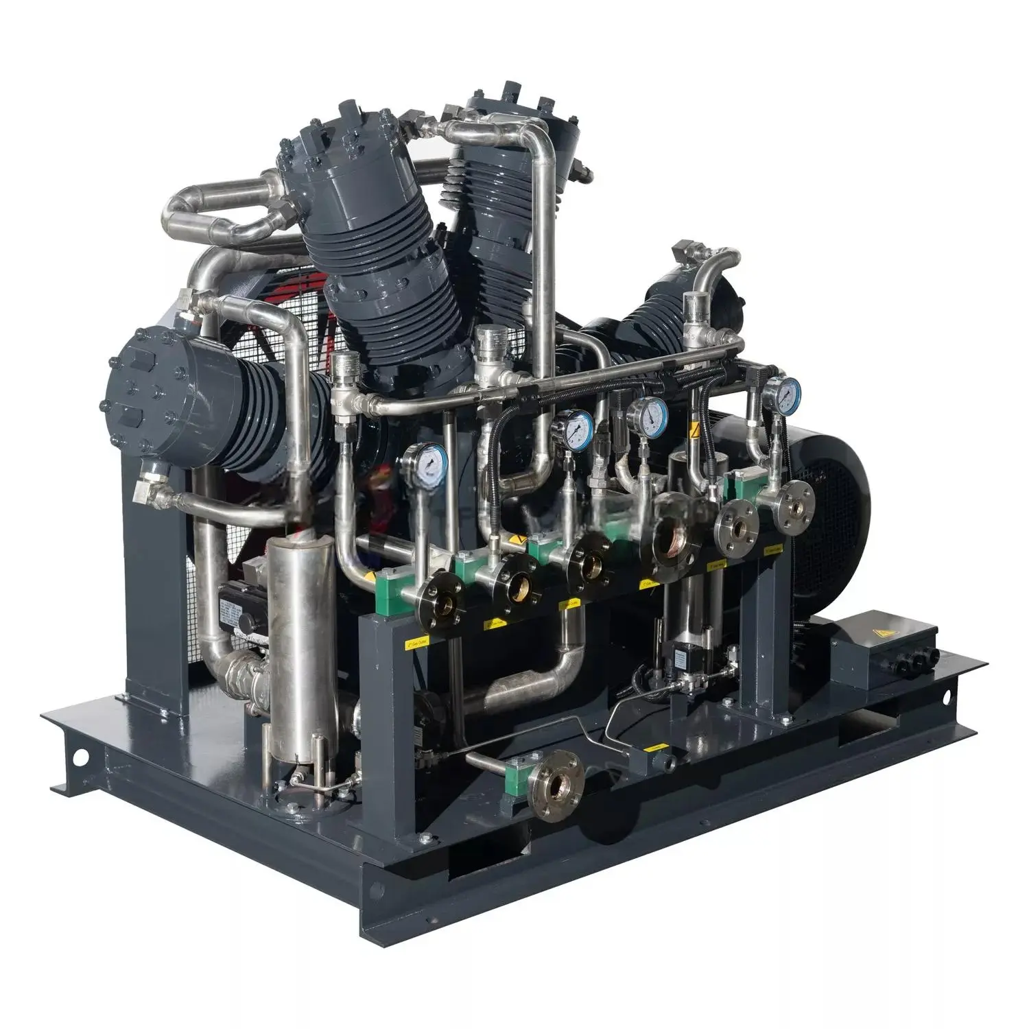 Oil-Free CO₂ Compressor is specifically engineered for carbon dioxide gas recovery and supercritical fluid extraction applications. Featuring a unique fan-type cooling system and three-stage compression technology, this compressor efficiently handles both negative and positive intake pressures while delivering pure, oil-free CO₂ output. The robust design with stainless steel gas path components ensures reliable performance in demanding industrial environments.
