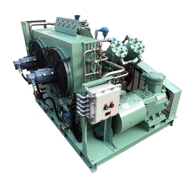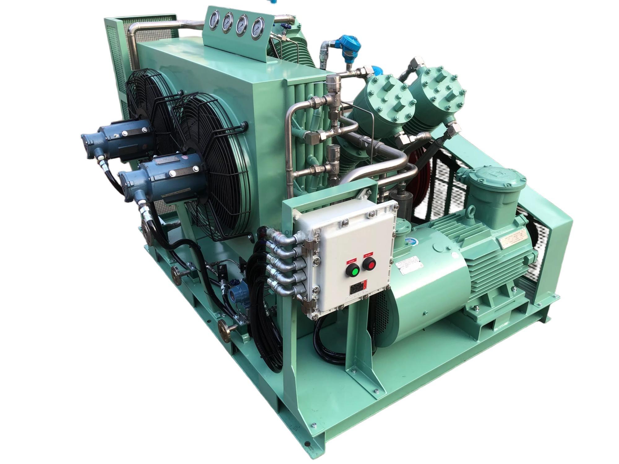 Pre-assembled unit with compressor, motor, cooler and controls for quick installation