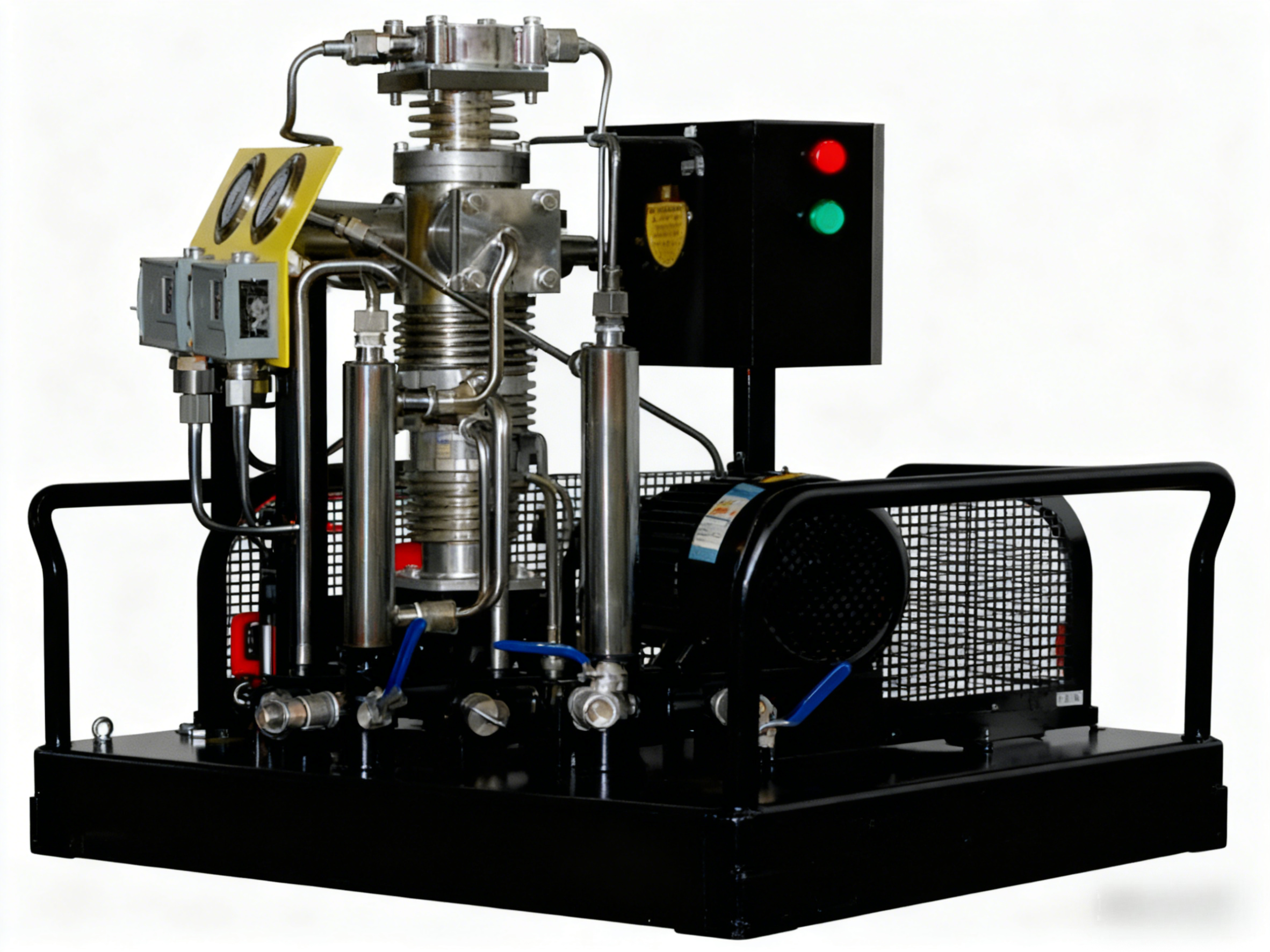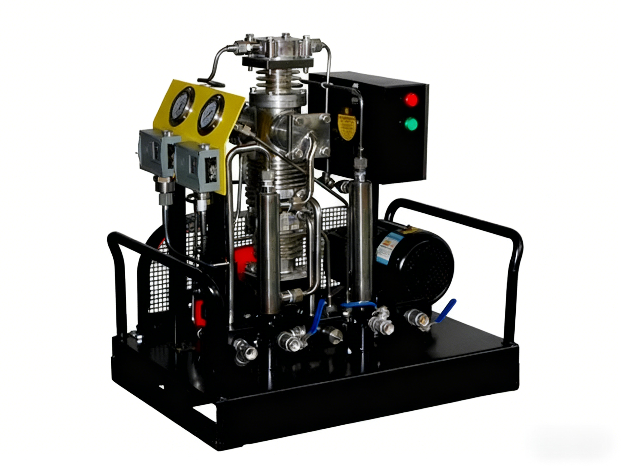 oil-free N₂O₄ dinitrogen tetroxide compressors are specifically engineered for handling this highly specialized and reactive gas with absolute purity and safety. Utilizing advanced oil-free reciprocating piston technology, these compressors prevent any contamination risk while delivering reliable performance in demanding aerospace, chemical, and research applications. Built for continuous 24/7 operation with flexible cooling options, they meet the stringent requirements of N₂O₄ gas compression.